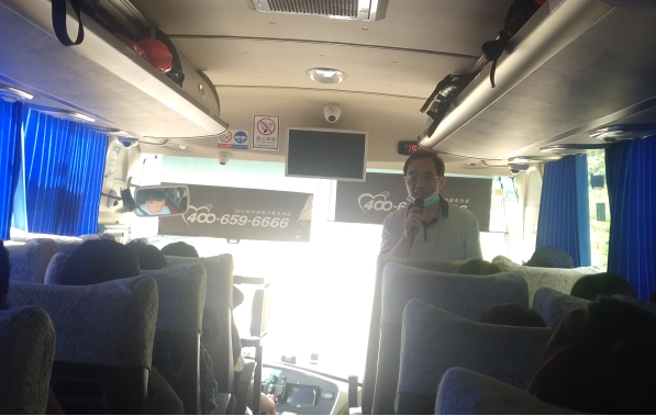 图 周光明在返程车上给全体党员上微党课