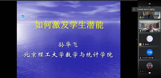 12月30日,“北航数学教学研究中心名师讲座” 首次线上报告活动顺利举行。北京理工大学孙华飞教授为学院师生作了《如何激发学生潜能》专题讲座,该报告吸引了来自北京地区包括北大等高校、以及江西、云南等地多所高校的师生在线学习交流。讲座由北航pp电子官方网站本科教学副院长杨义川教授主持。