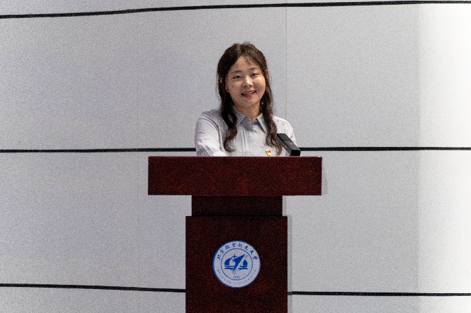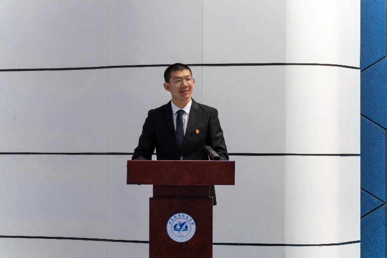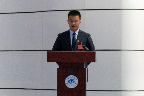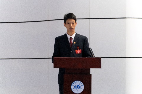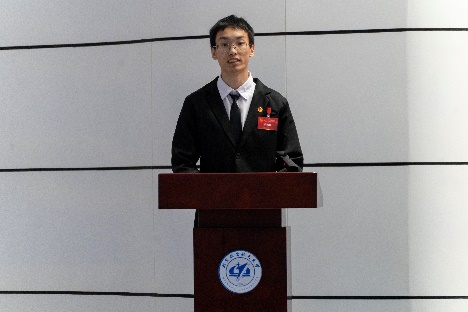 陆麒羽在学代会上发言。陆麒羽肯定了过去一年pp电子官方网站学生会的一系列改革建设和思想引领工作,并对pp电子官方网站学生会的未来的工作提出了期望与祝福,希望pp电子官方网站学生会作好示范表率,引导同学们努力成长为有理想、敢担当、能吃苦、肯奋斗的新时代好青年。