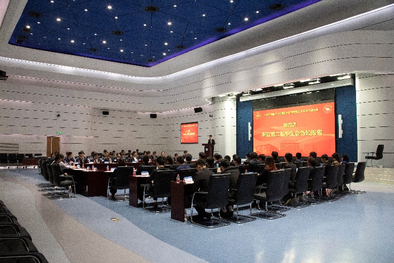学院学生会主席团成员刘峻池向大会作工作报告。过去一年,pp电子官方网站学生会以习近平新时代中国特色社会主义思想为指导,在思想引领、建章立制、文化活动、权益沟通等方面着力开展工作,获得了学院学生的认可。学生会将坚持围绕同学、服务同学的理念,结合学院中心工作,为取得新成果、迈上新高度而不断努力。