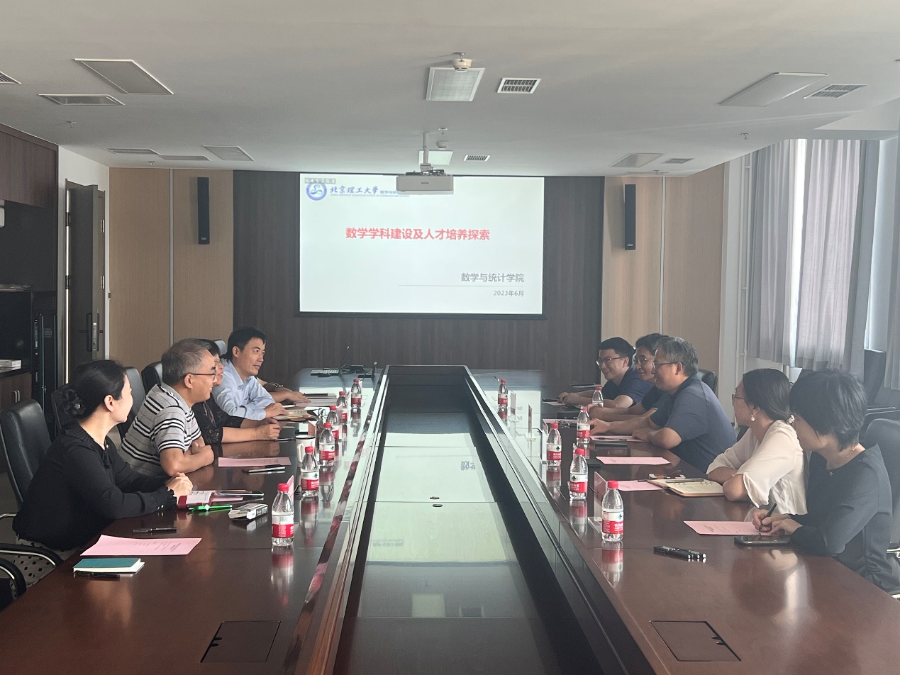 9月13日上午,pp电子官方网站院长韩德仁、副院长马声明、系主任罗雪、党政办公室主任齐丹、专职辅导员程乾前往北京理工大学数学与统计学院调研交流。北京理工大学数学与统计学院党委书记张希承、院长田玉斌、副院长徐厚宝、副院长衡靖、副书记陈丽健、党政办公室主任孙婧参加了此次调研活动。