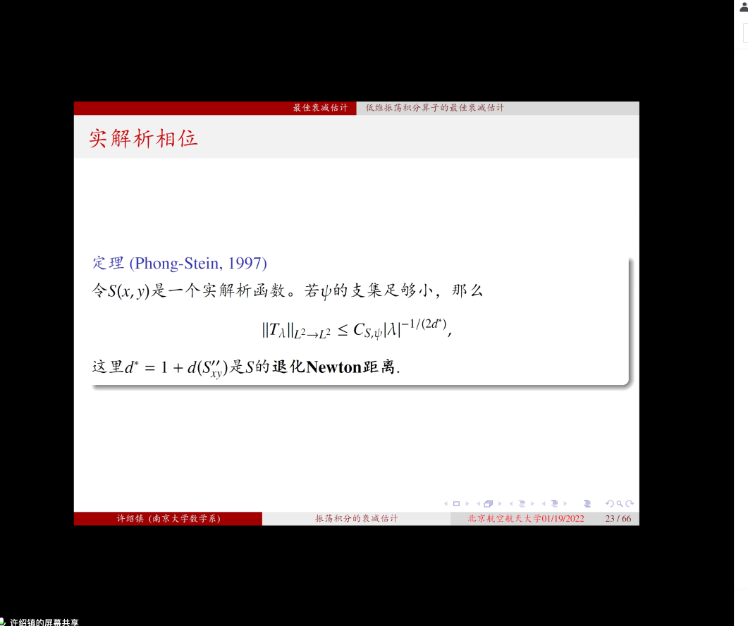 2022年01月19日下午,南京大学许绍镇老师应邀为pp电子官方网站师生做了题为 “振荡积分的衰减估计”的学术报告,报告由张安老师主持。