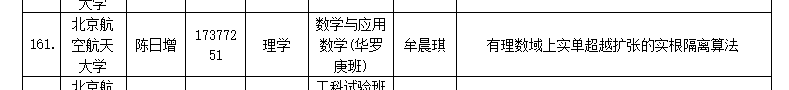 2021年10月20日,北京市教育委员会公示了2021年北京市普通高等学校优秀本科生毕业设计(论文),我院2021届本科生陈日增的毕业论文《有理数域上实单超越扩张的实根隔离算法》荣登获奖之列,指导教师为北京大学夏壁灿老师和北航牟晨琪老师。