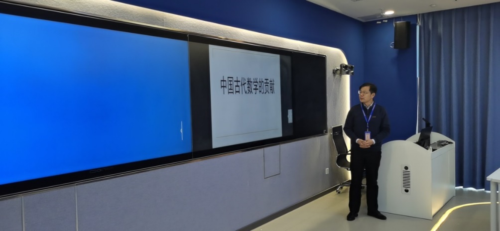 邢老师做“小概率事件与风险意识”专题报告,从概率论角度论证了小概率事件在多次重复试验中是迟早会发生的,并着重谈了中国人对这个原理的认识发现实例。贾老师做“中国古代数学的贡献”专题报告,主要介绍了中国古代数学是否由其他古代文明传入、中国古代数学是否属于数学发展的主流等两个问题。详尽的资料和分析显示,中国古代数学是中国古人杰出的贡献,很多成就领先世界,并且为微积分的产生做出了自己的贡献,是数学的主流研究方向。