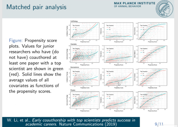 [1] “Early coauthorship with topscientists predicts success in academic careers.” Weihua Li, Tomaso Aste, Fabio Caccioli, GiacomoLivan. Nature Communications (2019).