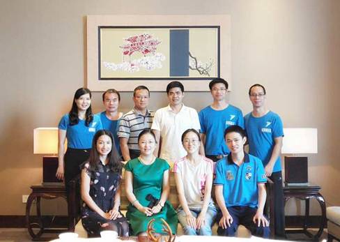 | 孙欣夫妇(右一、右二)和招生老师在南海中学合影 |
