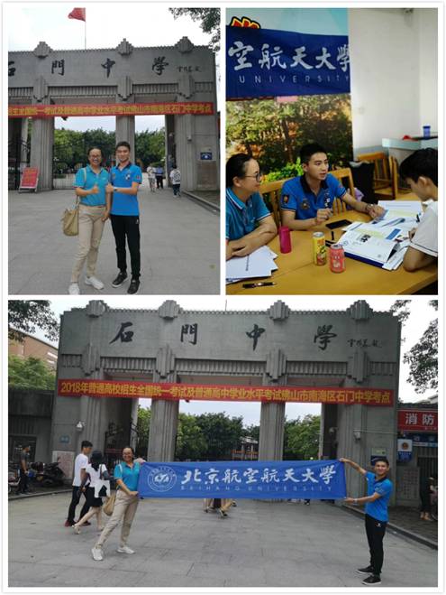 此次招生工作得到了广东省校友会、深圳校友会、佛山校友会、东莞校友会以及珠海校友会的大力支持,招生团队从2018年5月就开始建立微信群酝酿宣传方案,规划工作路线,充分借助校友资源,积极挖掘人际媒介,进一步加强北航在华南地区的影响力。在正值酷暑的招生宣传期间,北航赴广东招生工作组得到了校友们在衣食住行方面无微不至的关怀,在广东省校友会的全程协调,深圳校友会、佛山校友会、东莞校友会以及珠海校友会的全力协助下,共有百余位优秀的校友参与了招生宣传相关工作,共同出谋划策,倾力奉献。其中广东校友会张滨滨秘书长精心为招生组专门设计招生服装,隋莉副秘书长统筹安排“滴滴校友”的爱心车辆,胡振校友、夏虎校友、关琪校友、李杰校友、刘华松校友、胡勇校友、谢经干校友、袁绍敏校友、马骋校友、谭桔桔校友、何丽冬校友等热情帮助安排专车或亲自驾车护送招生老师城际穿梭,大大提高了工作效率。