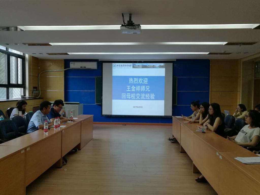 6月9日(周五)晚6点,我院在主213举办沙龙,特邀我校杰出校友王金祥师兄出席。此次沙龙旨在交流学术思想,探索前沿科技,分享实习情况,探讨人生方向。本次沙龙由数学学院研究生导员林泽田主持,数学学院研究生指导主任丁丁老师出席。