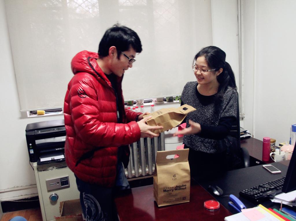 数学学院机关支部老师们为表达对北航在山西省吕梁市中阳县开展扶贫工作的支持与关注,在寒假放假前献上一份爱心,支部成员集体订购了满满两大箱子近三千元的扶贫产品,与此同时,侯聪同学也向数学学院机关支部具体介绍了北航在山西省吕梁市中阳县开展定点扶贫工作的情况,分享了他作为大学生依托新媒体宣传技术等方便的优势,开办“星棠商图”工作室的志愿服务经历。机关支部的老师们纷纷称赞这项有爱心、有创意、有品质的公益事业,表示今后一定继续关注和支持,通过一些力所能及的小事献一点爱心。