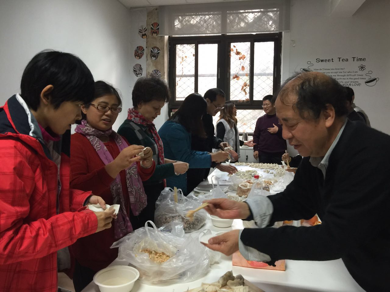 全院教职工表现出极大的参与热情,在各位工会委员的组织协调下分工明确、各司其职,伴馅儿的、擀皮儿的、包饺子的相互密切配合、团结协作,一个个热情洋溢、精神饱满,形成了一道道蓬勃有序的风景线。大家在包饺子过程中还相互观摩学习、切磋技艺、不断交流,整个过程充满了欢声笑语。在各位职工的辛勤努力下,一盘盘形状不同、姿态万千却摆放整齐的饺子不一会儿功夫便生动地呈现了出来。