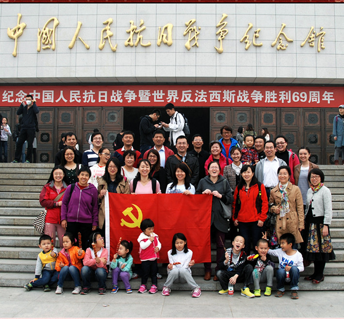 一大早,党员们首先来到了点燃抗日战争熊熊烈火的卢沟桥。凝望着历史,聆听着卢沟桥的故事,桥上502只石狮子,桥下的永定河水,使每一位党员的心中都涌起了太多的历史反思。当老师们走进宛平城内的“中国人民抗日战争纪念馆”时,在每一个人心中,感受到的依然是一种沉重。抗战历历在目,群英栩栩如生,一张张珍贵的历史照片,在党员心中留下了抹不去的悲痛以及对英雄涌起的无限崇敬。面对着鲜红的党旗,老师们自发的重温入党誓词,这一刻,使每一名共产党员再次接受了心灵上的洗礼。