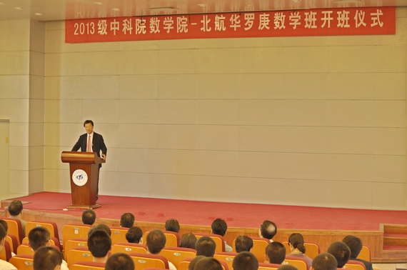 9月25日下午17:00,2013级中科院数学院-pp电子官方网站华罗庚数学班开班仪式在实4-205教室隆重召开。中科院数学与系统科学学院院长王跃飞、副院长洪佳林等等领导和专家学者;我校校长怀进鹏院士,教务处领导,数学与系统科学学院的领导班子成员;以及2012、2013级华罗庚班全体同学参加了开班仪式。仪式由教务处处长冯文全主持。