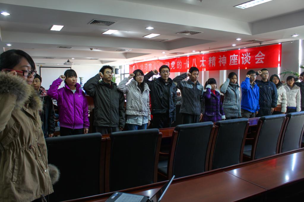 2012年11月30日12时15分,理学基础部2011级党支部党员发展大会暨十八大精神、罗阳精神学习讨论会正式召开,大会由理学基础部2011级党支部书记、数学与系统科学学院分团委书记丁丁老师主持,理学基础部2011级党支部全体正式党员、13名入党积极分子参与会议。
