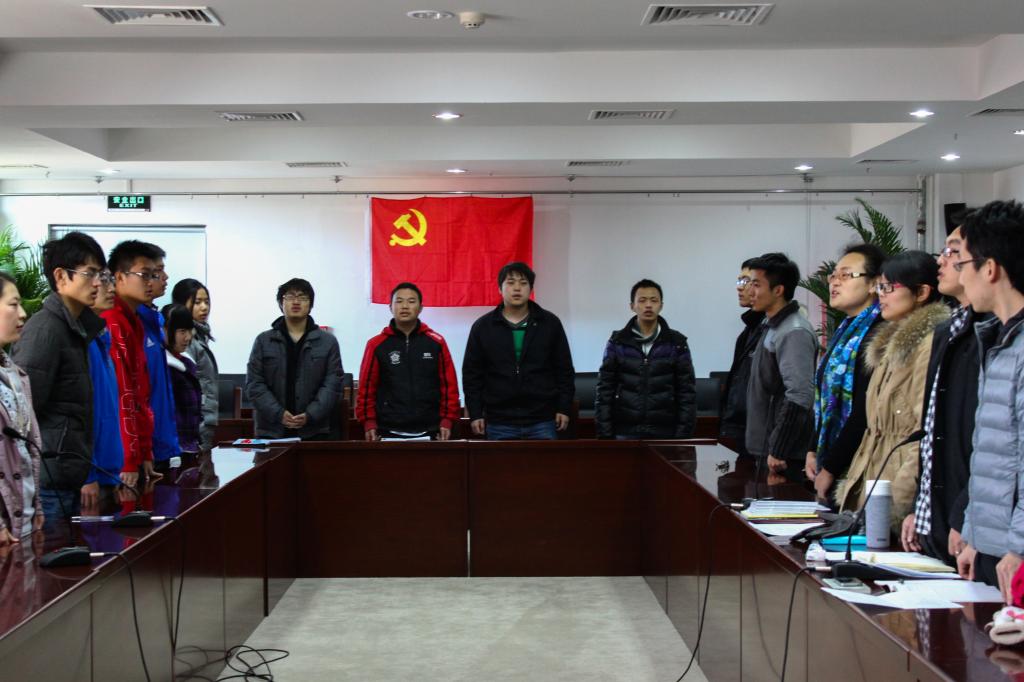 随后支部党员、数学与系统科学学院2011级辅导员李轩昂带领黄炎鹤等13名同志面对党旗庄严宣誓,发出了为共产主义奋斗终身的誓言。