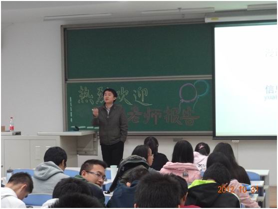 2012年10月31日下午2时,北航数学与系统科学学院信息计算系夏勇副教授在沙河开展了题为《漫谈最优化》的精彩讲座,2011级辅导员李轩昂同数学系2011级全体同学、2012级部分同学参与了此次讲座。