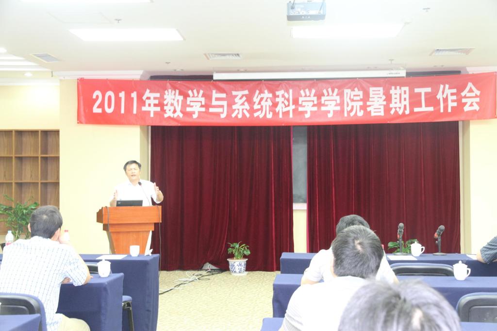 8月28、29日,数学与系统科学学院召开2011年暑期工作会。会议组织与会教师认真学习学校2011年暑期工作会精神,并就学院教学质量与工作量的评估指标、学院的特色学科和创新方向、学术评价体系、教师发展及青年人才的引育四个方面展开深入研讨。副校长郑志明教授、学院全体教职工出席会议。郑志明副校长为会议作主题发言,强调数学学院承载三个一级学科建设,任务艰巨,在有限资源条件下,应严抓教学质量,强化课程设置;教师发展和人才培养加快国际化进程;做好学科交叉研究,扩展应用数学的交叉研究范围,做到有的放矢等,并就学院发展现状与教师进行了交流,表示关爱学生,教师的发展将成为学院发展的新基础,也将成为学院再上新台阶的有力保障。学院新上任四位院长助理在会上分别作了述职报告,分别就学院本科教学、学科建设、学术交流、队伍建设等方面阐述了新思想。学院郑志勇教授、贾英民教授、刘铁钢教授、李尚志教授就学院发展整体态势和学院发展路线图、学院科研情况现状和未来学院科研发展点、研究生教学和人才培养规范化设置、学院教学整体情况作了精彩报告。会议期间,教师分为两组进行了自由讨论,就学校暑期工作会精神和郑志明副校长的讲话等进行了深入的学习,同时也就学院的教学设置规范化、团队建设等进行了广泛的探讨。此次会议的顺利召开,为学院今后的发展规划了蓝图,使教师的个人发展能与学院的整体建设紧密结合,极大的调动了教师工作积极性,将成为学院今后快速发展的基石。