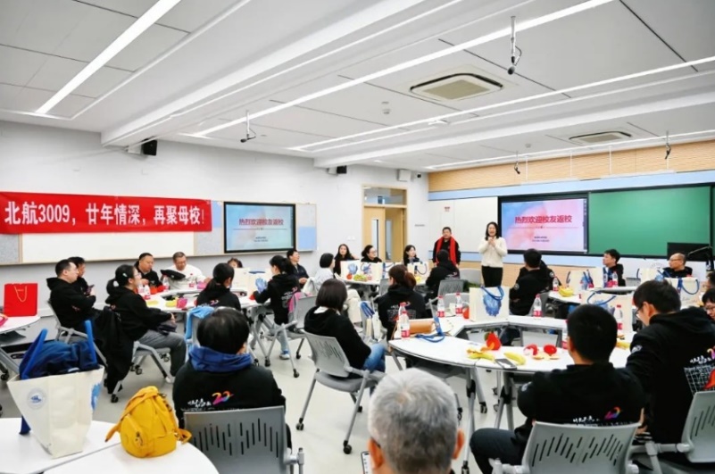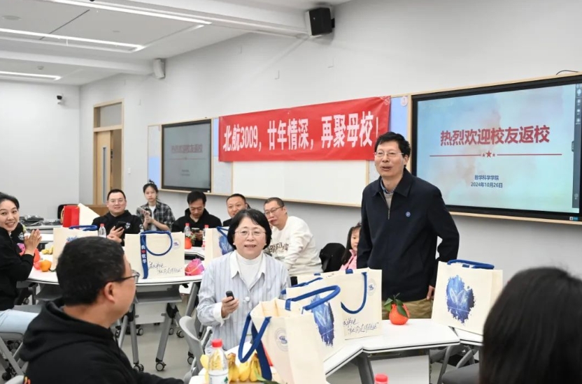 张筱对各位校友重回母校表示了热烈欢迎,就现今北航的校园建设、学科布局、办学资源、人才培养,学院的学科建设、人才培养、科研平台、数学文化宣传教育以及中法数学实验室建设进程向校友进行了详细的介绍,她表示希望各位校友在各自的领域,与学院携手,促进校企联合,发挥校友凝聚力,共同为学院人才培养、平台打造创造更强的竞争力,将自身成长与学院建设密切结合,为推动学校、学院高质量内涵式发展添砖加瓦。