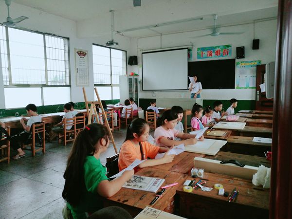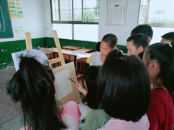 同时支教组在课堂上运用各种形式让学生在快乐中学到绘画知识,在场听课的小朋友眼睛紧紧的看着黑板,不时地还在本子上做笔记,一些好奇的学生提出的各种有趣的问题,志愿者们都耐心而细致地回答。课余时间,志愿者们带着小朋友开展各种有趣的活动,在乡村田野中放飞心情,有说有笑,和学生之间的距离迅速拉近。