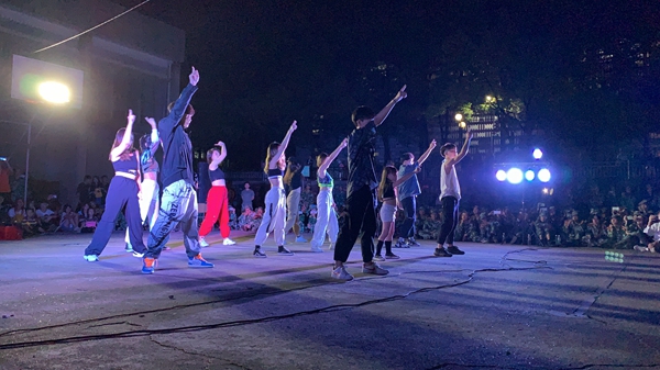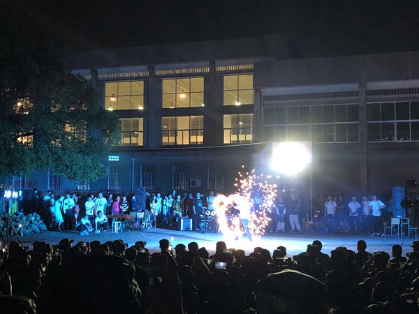 慰问演出在艺术团精心准备的开场舞中拉开序幕。炫动的舞蹈,充满朝气与青春的节奏,率先炒热了现场气氛。在场的新生们随音乐的节奏挥舞着手机的灯光,五教前坪一片沸腾。随后,龙吟棍社的双截棍表演以中国传统武术套路为基础,加入身形、步法、走位等动作,融合了现代时尚音乐和舞蹈元素,深深地吸引住全场人的目光,现场掌声不断。“太阳当空照,花儿轻轻对我笑,动画里的英雄也有成长的苦恼。”语言艺术部的胡毅汉、李刘源带来的相声《成长的烦恼》,用幽默话语讲述伴随一代人成长的烦恼,让人意想不到的剧情加以熟悉的儿童歌曲,引得观众捧腹大笑。“我们为这个表演准备了将近两个月,在这个过程中我们从毫无默契到开始不谋而合。期间我们会因为普通话、形体不够好而不断练习;也会因为有新的、可行的灵感而感到开心。我们希望这个表演能给学妹学弟们带来笑容,丰富学弟学妹们的军训生活,更希望通过表演为相声艺术的发展出一份微薄的力量。”胡毅汉说道。