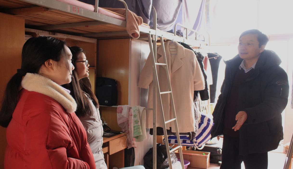 为统筹做好返校生复学工作,准确把握毕业生毕业心态、就业意愿和就业方向,确保学生在舒适温馨的校园中安心学习和生活,自2月28日至3月2日,威廉官网院长禹旭才、党委书记周光明、党委副书记廖双红、学工办副主任钱宁先后在辅导员的陪同下,前往返校学生宿舍进行慰问。