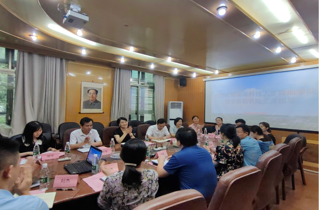 6月20日,威廉官网院长禹旭才、党委书记廖双红带队到湖南工程学院应用技术学院进行工作交流。副院长余蓉晖、副书记叶军及学院各科室负责人、学部部长参加。