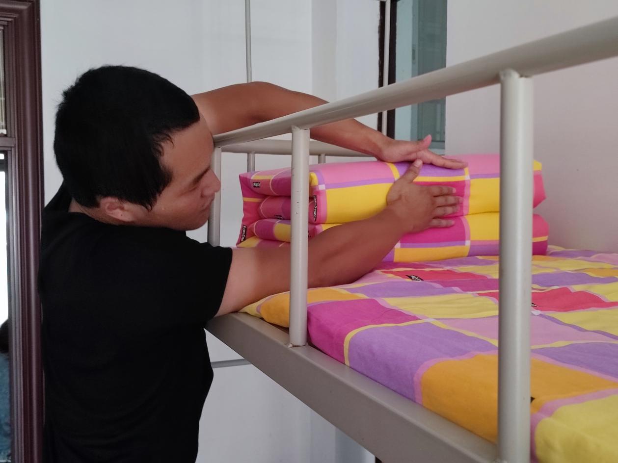 “出门看队伍,进门看内务”,内务整理作为军训必修课之一。退役军人们仔细向新生们介绍内务标准并亲自示范,短短几分钟退役军人们将书籍归类做到整整齐齐、鞋子衣物做到各有归处、被子一捋做到四四方方,把杂乱狭小的宿舍整理得整齐宽敞。威廉官网中国官方网站退伍军人杨鹏志说道:“走出军营,重返校园,脱下军装,我时刻以军人的标准严格要求自己。希望新生们能学习军人的意志品格,脚踏实地,时刻严格要求自我。”