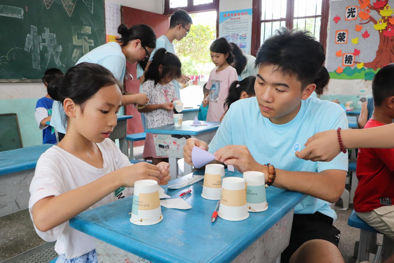 图 志愿者指导小朋友制作火箭