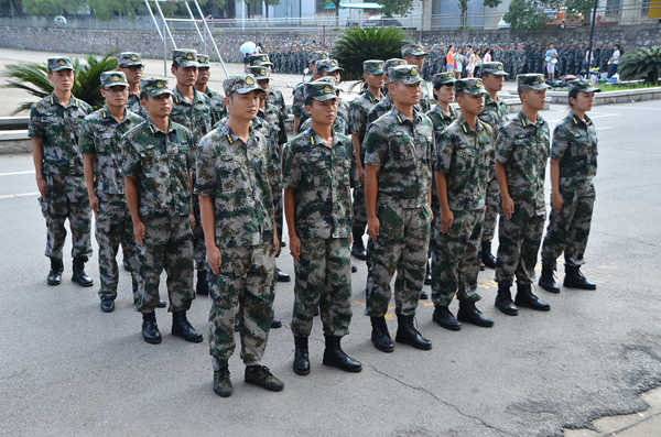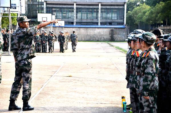 紧接着,军训团团长郭任将教官们带到各个学部军训场所在位置,随后四个学部新生辅导老师均对带队教官以及14级新生交待军训纪律,并预祝军训取得圆满成功。