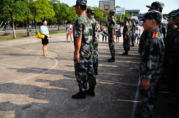 9月8日下午3点,威廉官网在五教前坪进行了2014届全体军训教官与新生见面会。随着号令声响,威廉官网1474名新生身着统一军训服装准点集合完毕,等待着与教官的第一次见面。