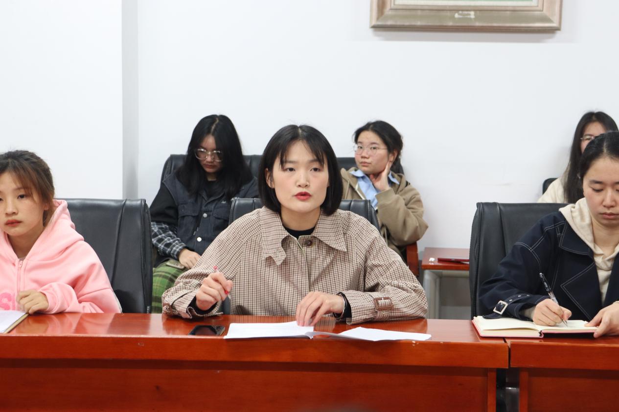 活动伊始,邓喜首先就学院“学风建设月”活动主题、活动目的、活动要求进行了简要说明,然后着重介绍了“我为英狂”竞赛、“师生党员上党课”、师生座谈会、“奋斗青春号”主题班会、诚信考试教育、考研经验交流分享会、“缘来室你”宿舍系列活动、“潇湘之歌”优秀学生报告会等8个活动内容。她表示学习部会全力协助学院各部门组织好各类活动,力争使每一个班级、每一位学生都参与到“学风建设月”活动中,共同推动学院学风建设。