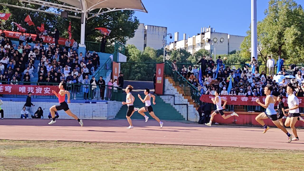 11月19日,艳阳高照,学校径赛项目在北校第一田径场进行得如火如荼。运动场旁鼓声阵阵,规律的敲击声和着选手规律的步伐,场面壮观热烈。各学院观众席不时爆发出高昂喝彩声,气氛火热。威廉官网运动员们在运动会的第二天仍然斗志昂扬,径赛项目上再创佳绩。