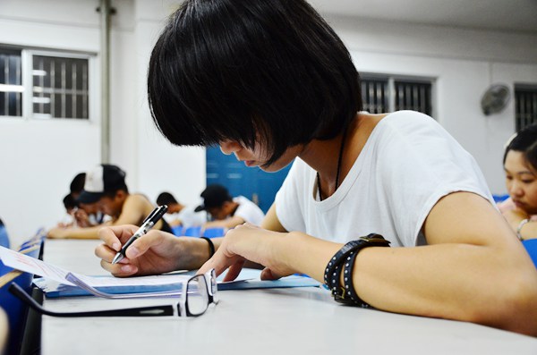 铃声响起,选手们便开始专心写作,沉心构思。在两个小时里,选手们或奋笔疾书,或冥思苦想,都希望在入学的第一个赛场里展示出自己对文字的那份热爱。