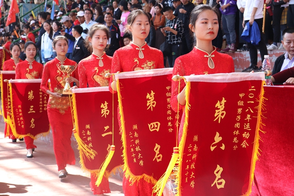 副校长胡石其教授致闭幕词。他代表学校向在运动会上取得优异成绩的单位和运动员表示诚挚的祝贺,向为运动会顺利进行而付出辛勤劳动的全体裁判员、教练员和工作人员表示衷心的感谢。他表示,本次运动会既是一次成功的运动会,也是文明的运动会。比赛虽然结束了,但体育带来的蓬勃精神不会谢幕。