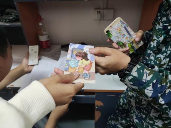 图 给学生们发放明信片