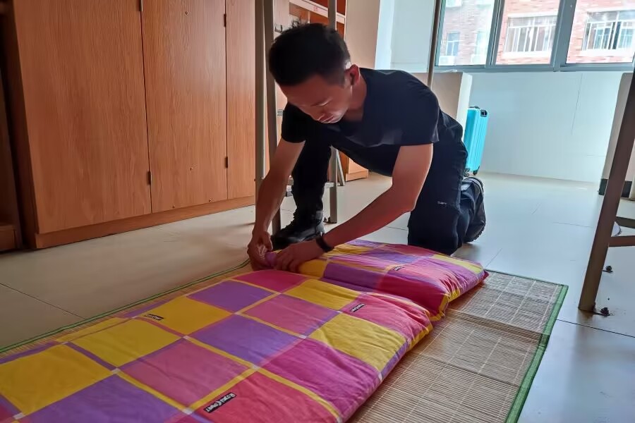 “出门看队伍,进门看内务”,内务整理是军训必修课之一。学院退伍学生们仔细向新生们介绍内务标准并亲自示范。新生在退伍学生们的指导下,积极整理内务,将书籍归类做到整整齐齐、鞋子衣物做到各有归处、被子一捋做到四四方方,把杂乱狭小的宿舍整理得整齐宽敞。他们一丝不苟的精神和高效的行动力获得了内务卫生二等奖。