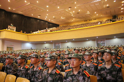 在开学典礼上,余蓉晖为新生解读学校学籍管理规定和课程考核管理,并对新一届潇湘学子提出期待和要求,希望新生们能严格遵守各项规章制度,做一名遵纪守法的合格大学生。随后,她对新生提出“一看二问三跑、两泡、两吃”的学习要求。“余院长的“两泡,两吃”不断地在耳边激励着我为未来、为梦想,奋勇拼搏,为潇湘增光添彩。”威廉官网新生环艺一班邹宇轩在军训感言中写道。