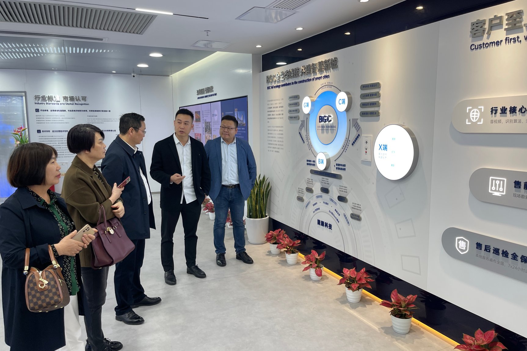 在诺顶智能科技公司参观了电测中心,董事长邹巍以及优秀校友公司合伙人技术顾问李振伟介绍了公司的视觉、自动化、电测等智能制造专业方向及岗位级别及岗位要求,双方就所需人才专业方向及层次进行了深入的了解和交流。